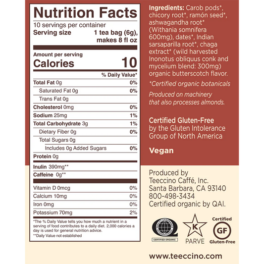 Chaga Ashwagandha Butterscotch Cream Mushroom Herbal Tea