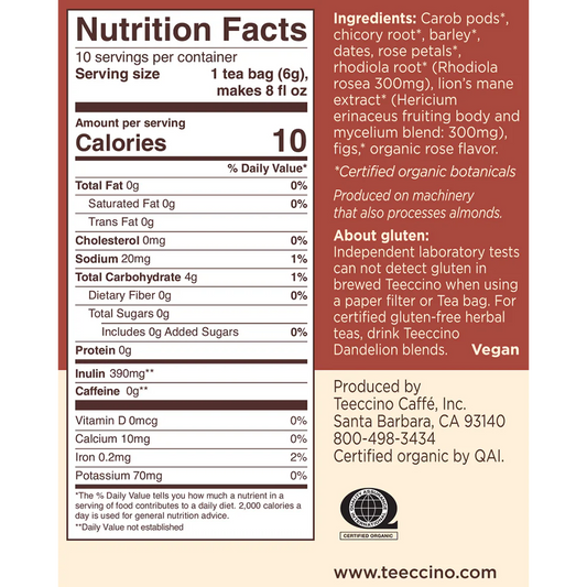 Lion's Mane Rhodiola Rose Mushroom Herbal Tea