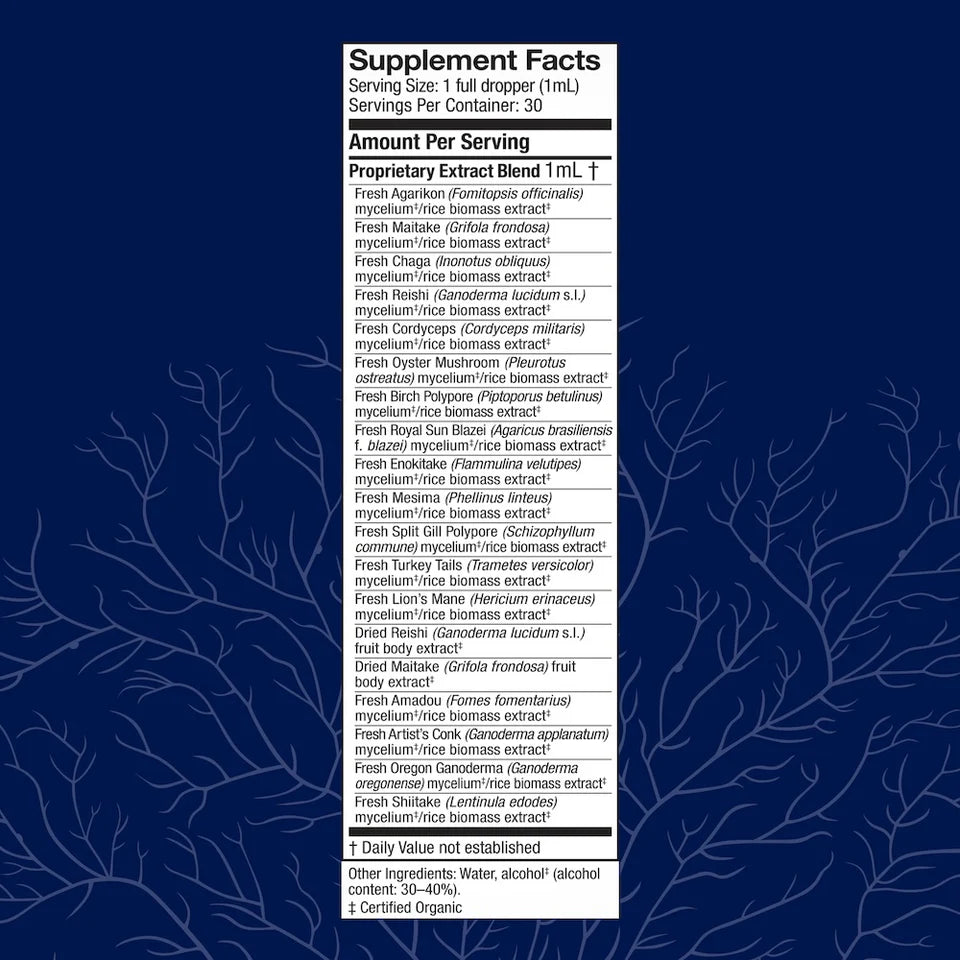 Made with triple-extracted, organic mushroom mycelium and fruit bodies grown in the USA.