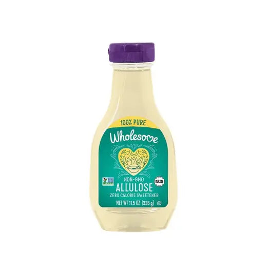 WHOLESOME ALLULOSE IS A DELICIOUS CALORIE FREE SWEETENER THAT TASTES LIKE SUGAR WITH A MILD, CLEAN SWEETNESS, NO BITTERNESS, AND NO AFTERTASTE. ALLULOSE IS A RARE SUGAR NATURALLY FOUND IN FIGS, RAISINS, AND KIWI. IT IS FREE FROM FILLERS AND FLAVORS MAKING IT THE PERFECT ZERO CALORIE SWEETENER. IT IS PERFECT FOR LOW CARB DIETS AS ALLULOSE HAS NO GLYCEMIC IMPACT ON BLOOD SUGAR. ALLULOSE IS GREAT FOR BAKING FLUFFIER, SOFTER RECIPES LIKE CAKES. MUFFINS AND QUICK BREADS. IT DISSOLVES EASILY, SO WE LOVE IT IN COFFEE, TEA, SMOOTHIES AND MOUSSE TOO!