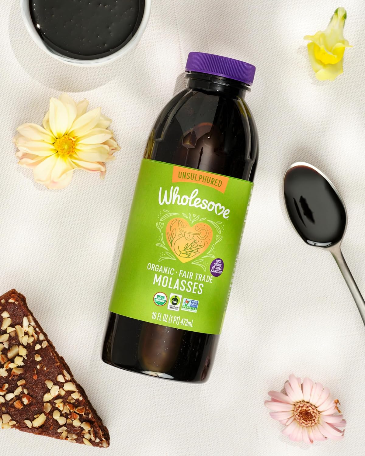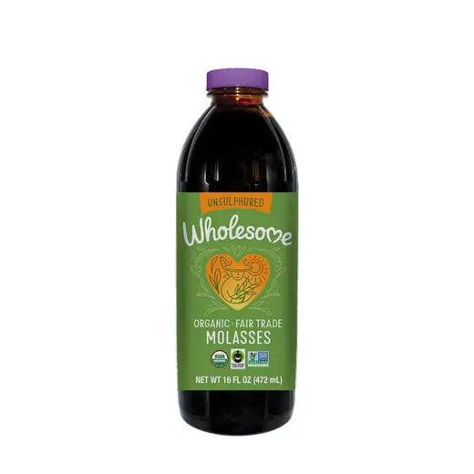 Fair Trade Organic Molasses has a rich, full-bodied robust flavor and adds natural color and opulent caramel molasses tones to recipes. It is especially good in gingerbread, molasses cookies, bran muffins, quick breads, chili, BBQ sauces and in marinades. This molasses is unsulphured, organic blackstrap-style molasses. Try Wholesome!'s delicious Organic Molasses recipes below. It can be used as a one-for-one replacement for refined molasses.