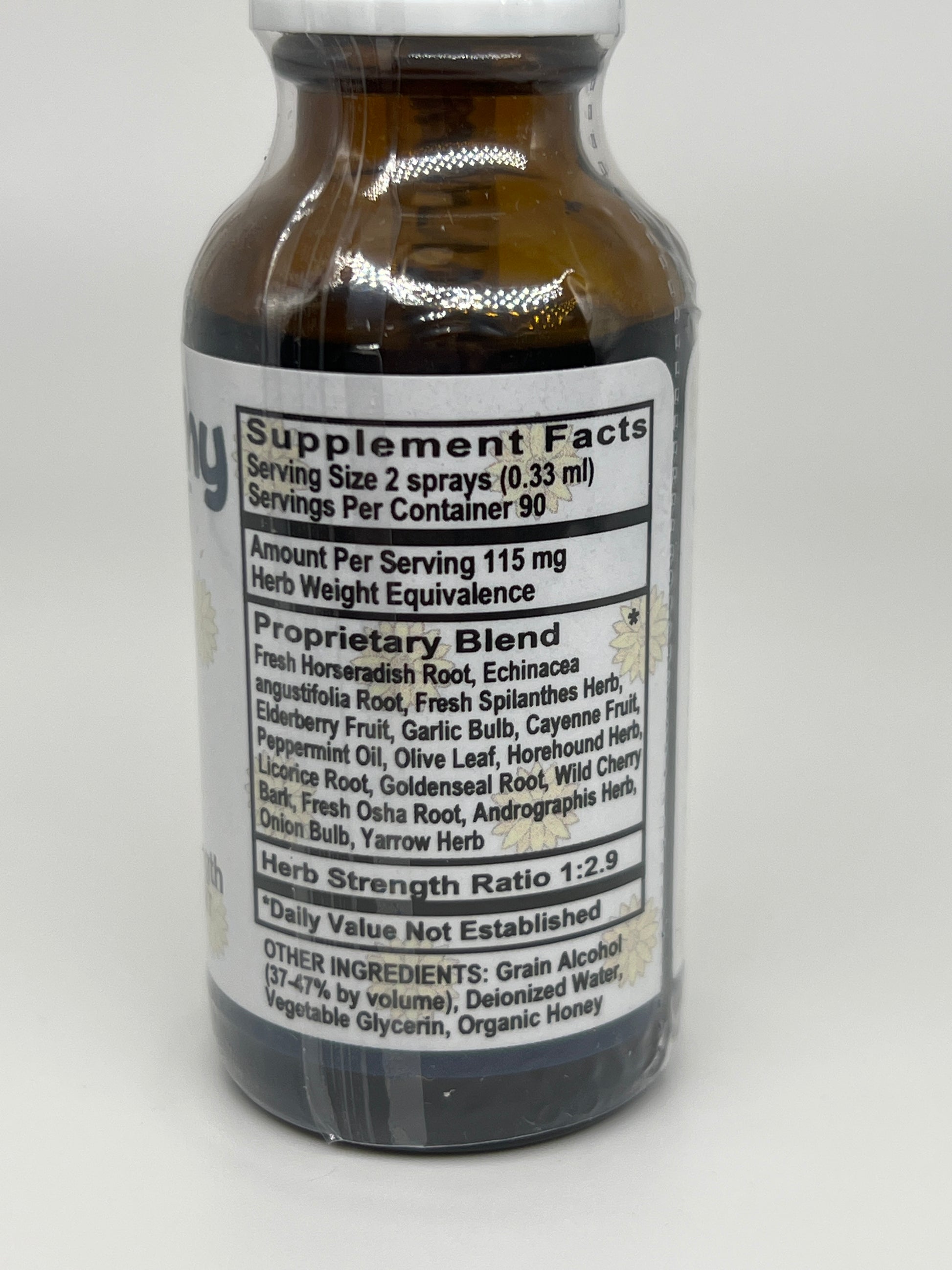 FORMULA: Fresh Horseradish Root, Echinacea angustifolia Root, Fresh Spilanthes Herb,