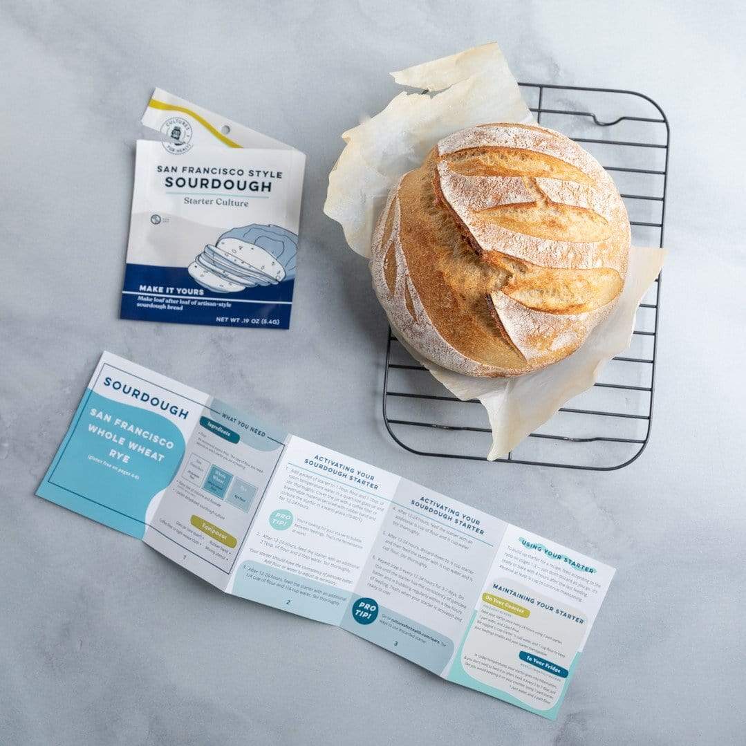 The Sourdough Starter is an heirloom culture in a San Francisco style, meaning you'll make endless bread dough all from one starter! Just add water and white flour.