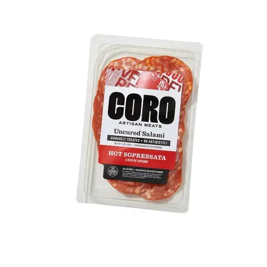 Get Coro Foods Hot Sopressata, flavored with a not-so-subtle hint of cayenne, in a conveniently sliced version. Single sliced pack includes 3 ounces of thinly sliced salami and is ready to eat.